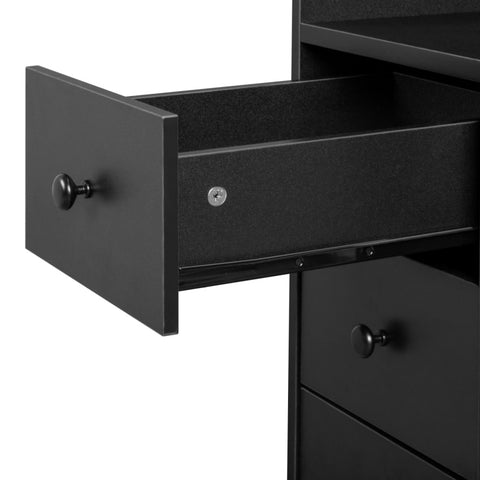 【Durable & Easy-Clean Surface】Built with sturdy MDF and finished in a smooth black laminate, the table offers a stable work surface that is resistant to scratches, spills, and chemicals commonly used in nail salons, ensuring easy cleanup and long-lasting use.