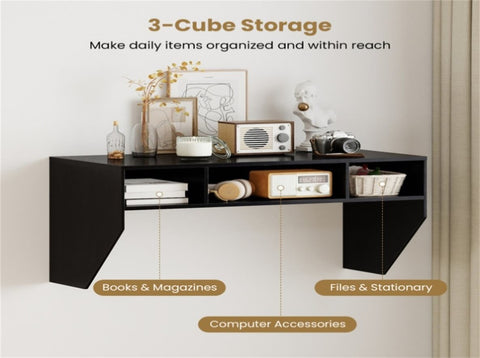 Black Wall-Mounted Floating Computer Desk with 3-Cube Storage, Sturdy Wooden Workstation for Home 63240974