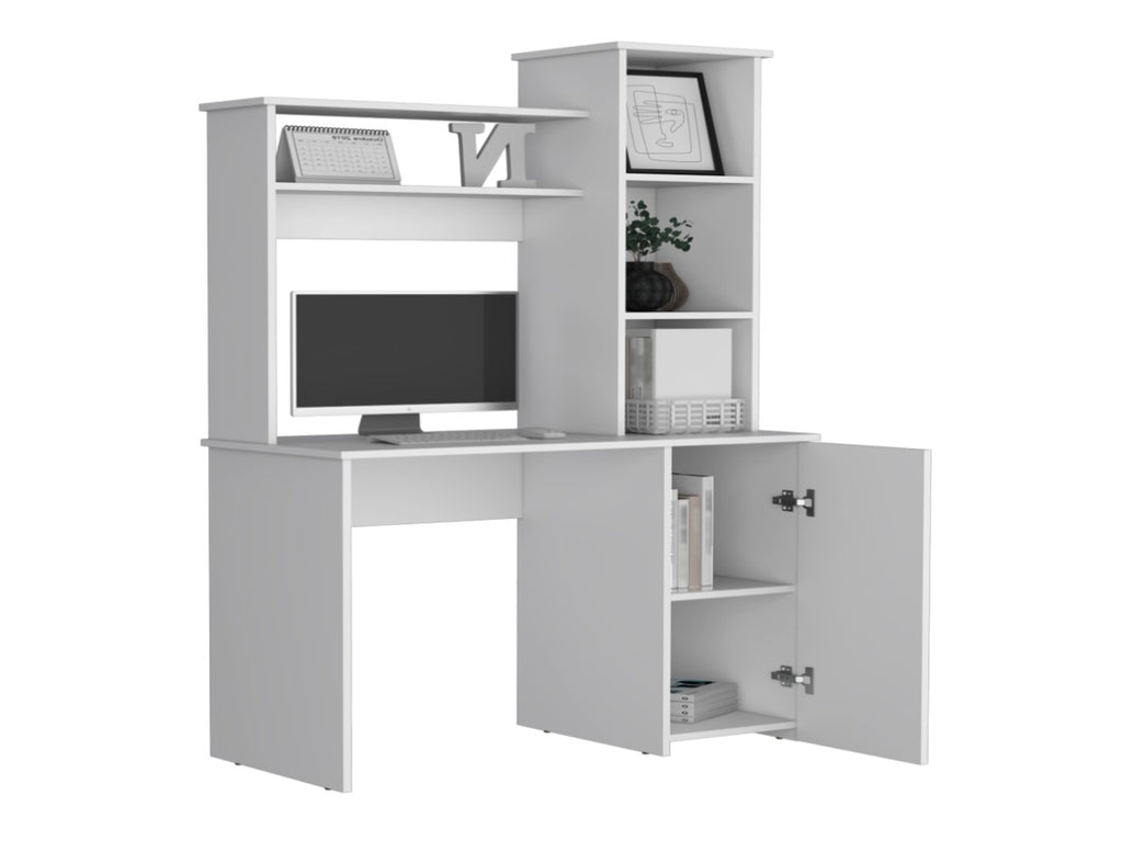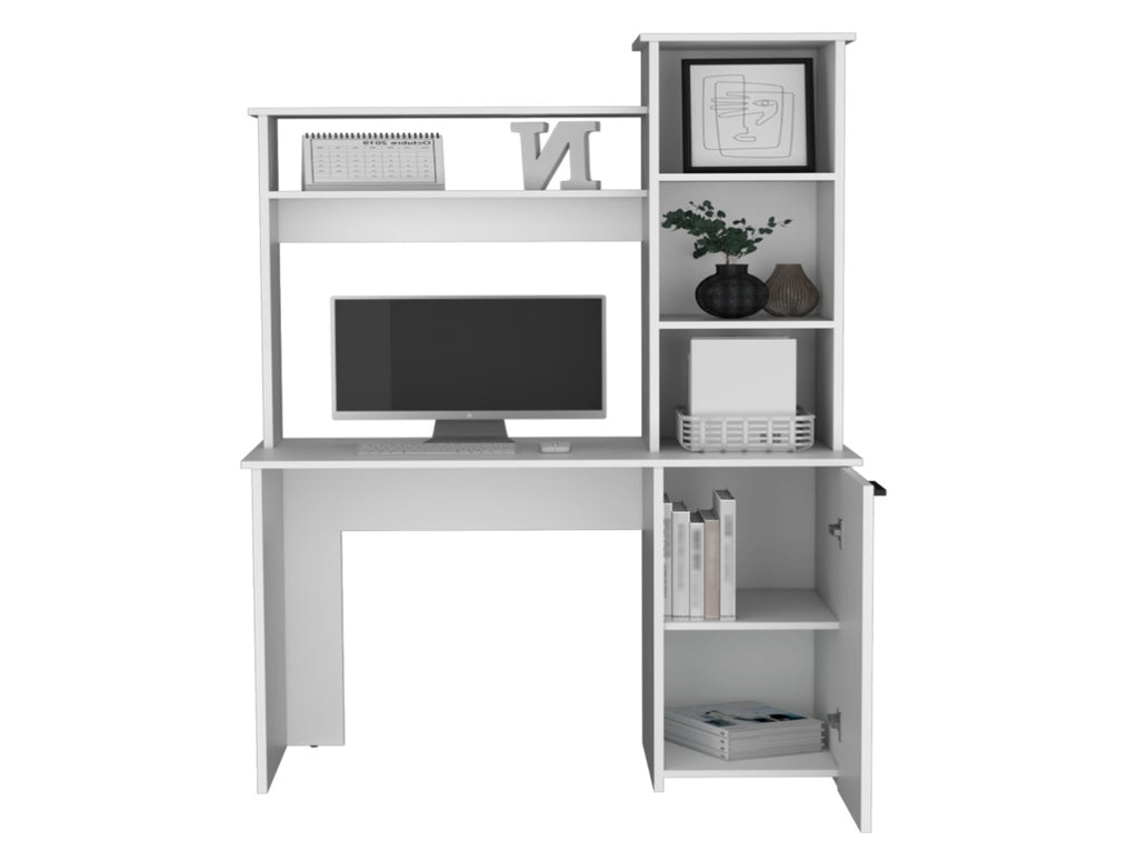 Carson Computer Desk with Hutch, Single Door Cabinet, Expansive Work Surface and 3-Tier Storage B070P188876