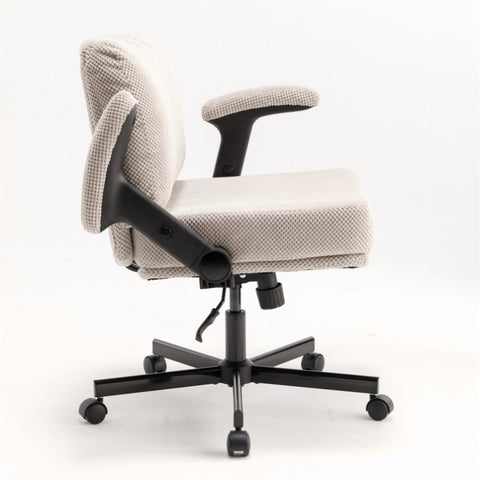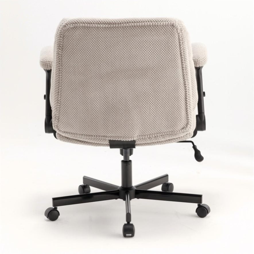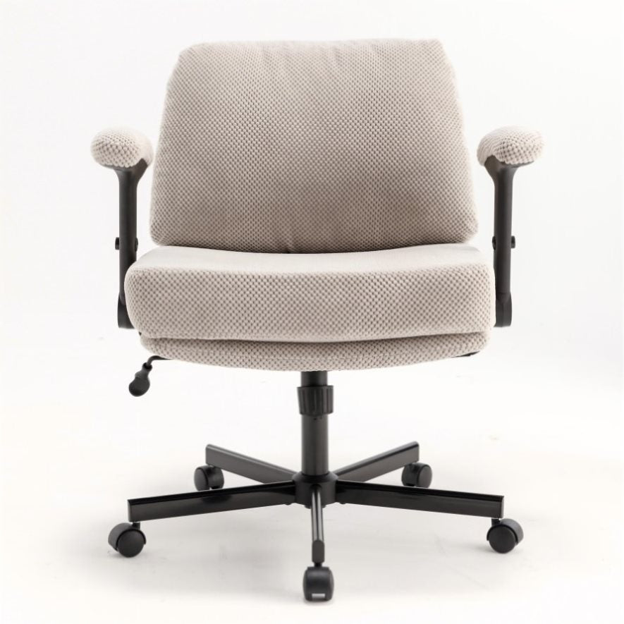 Chair with Wheels and Flip Arms-Comfy Fabric Cross Legged Office Chair with Thick Cushion&Wide Seat, 28317778