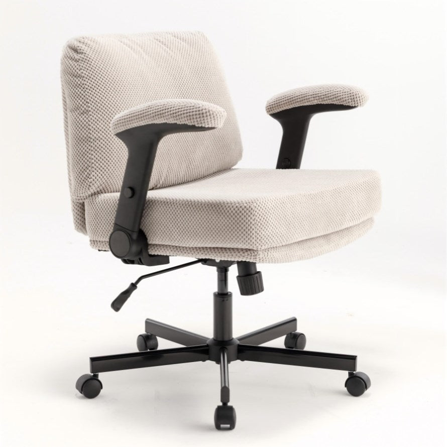 - Comfy Texture Meets Modern Style: Wrapped in soft, skin-friendly grainy-textured fabric, this swivel desk chair brings a warm, inviting vibe to any room. The plush seat and backrest offer both comfort and style—making it a perfect addition to apartments, home offices, dorms, or any creative space that could use a cozy, modern upgrade. The chair with arms delivers the perfect mix of cloud-like comfort, supportive cushioning, and modern style