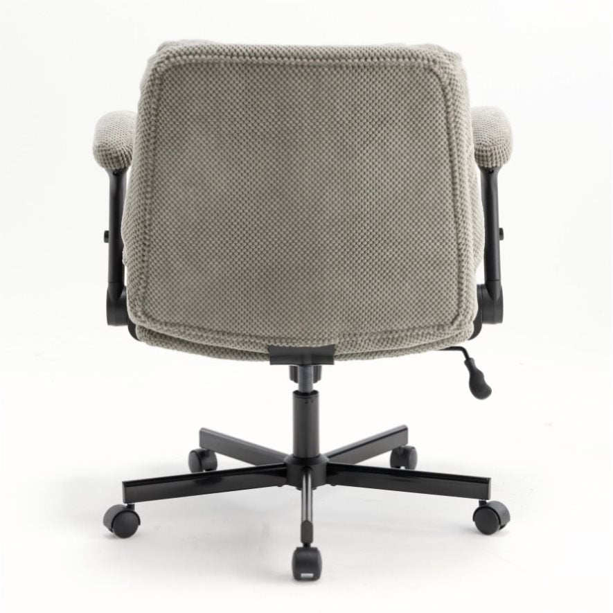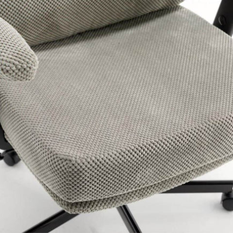 • Comfy Texture Meets Modern Style: Wrapped in soft, skin-friendly grainy-textured fabric, this swivel desk chair brings a warm, inviting vibe to any room. The plush seat and backrest offer both comfort and style—making it a perfect addition to apartments, home offices, dorms, or any creative space that could use a cozy, modern upgrade. The chair with arms delivers the perfect mix of cloud-like comfort, supportive cushioning, and modern style