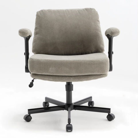 Chair with Wheels and Flip Arms-Comfy Fabric Cross Legged Office Chair with Thick Cushion&Wide Seat, 43759200