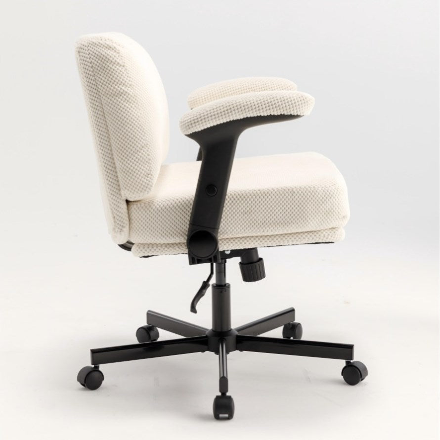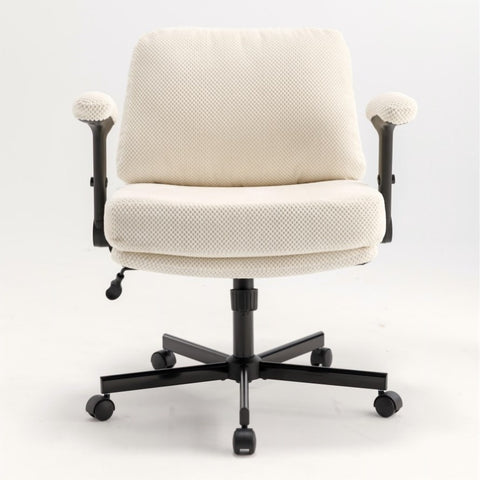 Chair with Wheels and Flip Arms-Comfy Fabric Cross Legged Office Chair with Thick Cushion&Wide Seat, 75595356