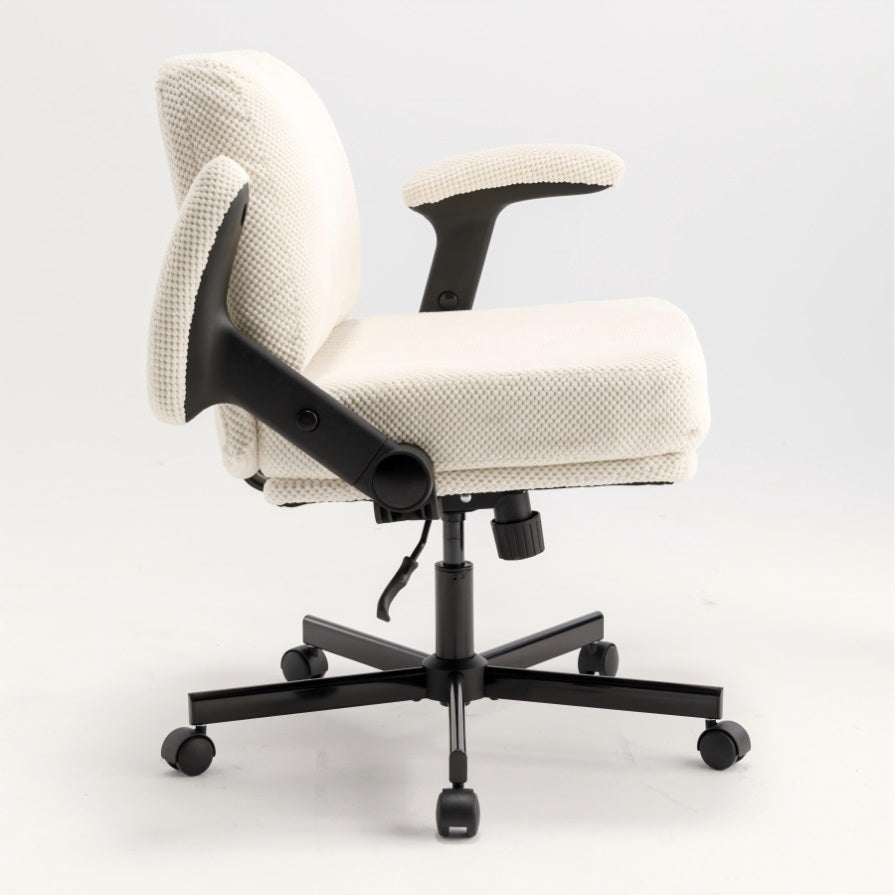 • Comfy Texture Meets Modern Style: Wrapped in soft, skin-friendly grainy-textured fabric, this swivel desk chair brings a warm, inviting vibe to any room. The plush seat and backrest offer both comfort and style—making it a perfect addition to apartments, home offices, dorms, or any creative space that could use a cozy, modern upgrade. The chair with arms delivers the perfect mix of cloud-like comfort, supportive cushioning, and modern style