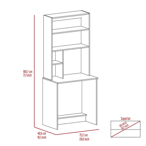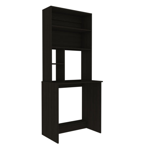 Compu Hutch Desk, Four Shelves, Writing Desk, One Lower Shelf -Black B20091904