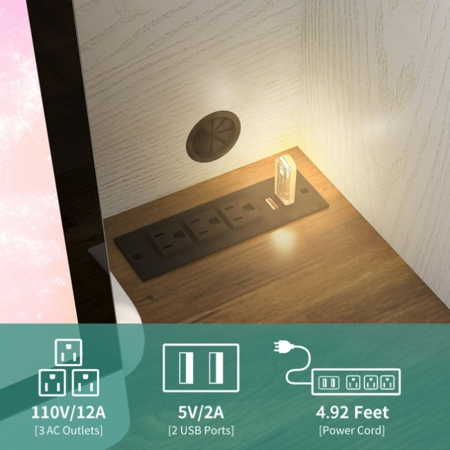 The desk comes with a voice-controlled night light. It can be directly plugged into the built-in socket of the desk, and the light can be turned on or off through voice control, and the 6 light colors can be changed.