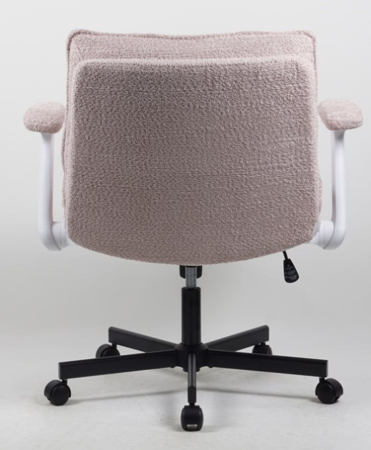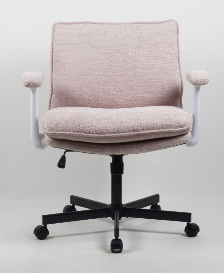 Foldable Armrests for Flexible & Space-Saving Use:The armrests can be easily flipped up, allowing seamless conversion between an arm-supported chair and an armless one to match different sitting preferences. 25.5-Inch Wide Seat Ideal for Cross-Legged Sitting:The extra-wide seat comfortably accommodates diverse sitting postures, such as cross-legged sitting, side sitting, and posture shifts, freeing you from the limitations of traditional office chairs. Filled with high-resilience foam and covered in breathable fabric, it keeps your hips dry and cool even during long work or study sessions, balancing comfort with ergonomic support.Thick Cushioning for All-Day Comfort Without Fatigue:The chair uses "cloud-like" high-density filling. It fits the curve of your waist and back, evenly distributing body pressure. Whether you’re working for hours, reading a book, or taking a short break, it provides continuous support to prevent waist and back soreness.Towel-Textured Upholstery: Perfect Blend of Style & Comfort:The entire chair is wrapped in towel-textured fabric, which feels soft and skin-friendly, bringing a warm and delicate touch. Its simple and modern design seamlessly integrates into scenarios like apartments, home offices, or creative studios. Quiet & Reliable:Featuring a reinforced plywood frame and a durable metal base, the chair has a solid structure and strong load-bearing capacity. Paired with a BIFMA Level 3 certified gas lift, it ensures safe and stable height adjustment, meeting international office furniture safety standards. The 360° silent casters enable smooth and noiseless movement, catering to the flexible needs of switching between multiple workstations.