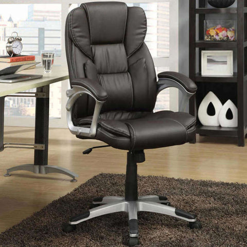 Dark Brown and Silver Swivel Office Chair with Armrest B062P153795