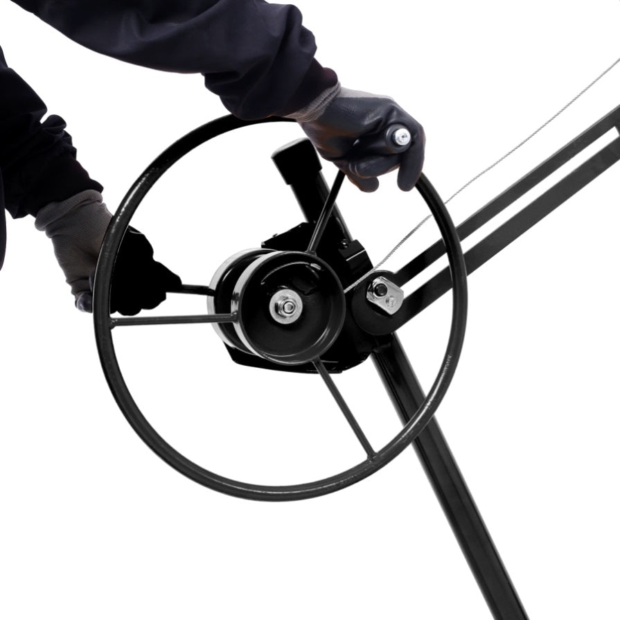 Features: One Person Operation Load Capacity: 150 Lbs Sturdy welded steel construction with powder coating Foot stops to keep the lift in place for safety Disassemble no tools required Sturdy welded steel Hoist tilting for ceilings and walls Built-in winch with brake CE Standard Easy to assemble Could lower to 34" off the floor for easy panel loading Perfect For Both Home & Commercial Use Specification: Color: Red Foldable: Yes√ Brakes: Yes √ Material: All welded Steel Power source : hand chain Max Height: 11' Plate size : 4'x8' Adjustable height: 4'to 11' Apply various Drywall panels up to 4ft*16ft 4" caster wheels for easy rolling Load capacity: 150lbs The Drywall lift has following components which must be assembled before use: 1.Tripod base assembly 2.Frame assembly, which includes a winch assembly and standard telescoping lift sections 3.Cradle assembly, without its detachable cross arms 4.Two cradle cross arm assemblies 5.User's Manual Included Maximum Support 150 Pounds Our drywall lift supports the maximum load of 150 lbs. During the operation, we should pay attention to the weight of the lifted object, and remember not to exceed the maximum load to avoid accidents. Built-In Winch With Brake Lifter is easy to assemble and disassemble. The lock device and built-in winch brake are included for increased safety and sturdiness. Adjustable Telescopic Arm Telescopic arm can be adjusted from 49' to 114', ideal for installing 4' x 16' sheets.