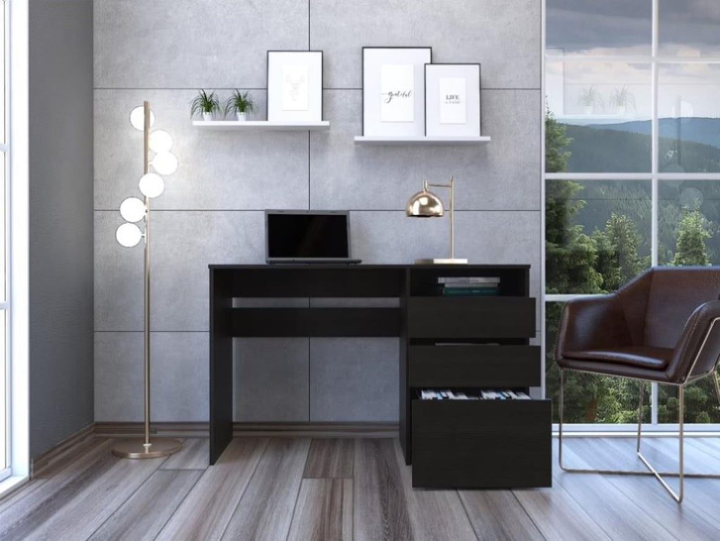 Dublin Three Drawer Computer Desk, One Shelf -Black B20091905