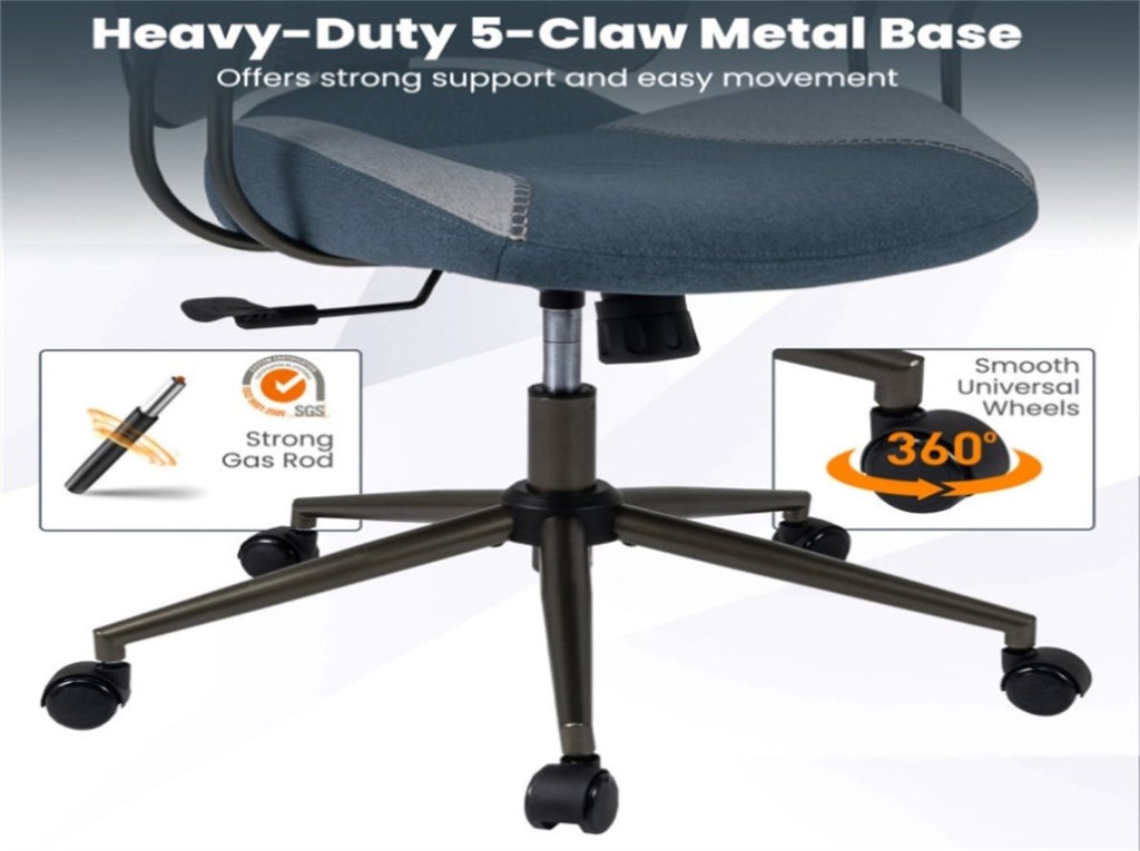 • Sturdy Structure & Easy Mobility: Built with an SGS gas rod, the work chair allows for smooth height adjustment. Plus, its heavy-duty metal base provides a large weight capacity, while the 360° universal wheels ensure smooth movement.
