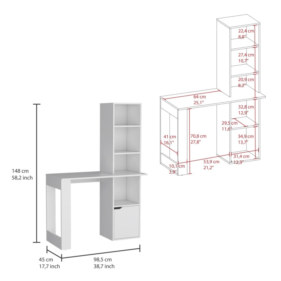 Iowa Computer Desk with 1-Cabinet and 4-Tier Bookcase B070P188863