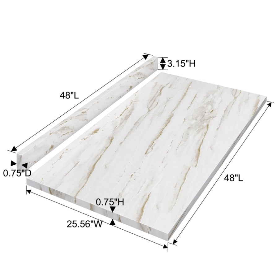 HIGH-QUALITY WOOD PLYWOODMade of high quality laminate, this table top is designed to withstand daily use. The 0.75-inch thickness provides ample strength and stability.the durable laminate is resistant to stains, wear and stains, but not scratch-proof, making it easy to clean and maintain. Please note: marble countertops are not recommended for use in high temperature environments