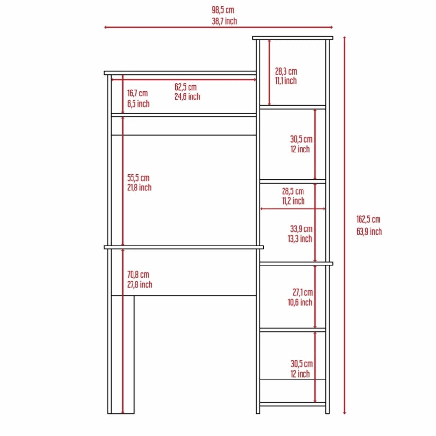 | Three semi-open shelves on the left | Top shelf: 11.1" H x 11.2" W, middle shelf: 12" H x 11.2" W, lower shelf: 13.3" H x 11.2" W |