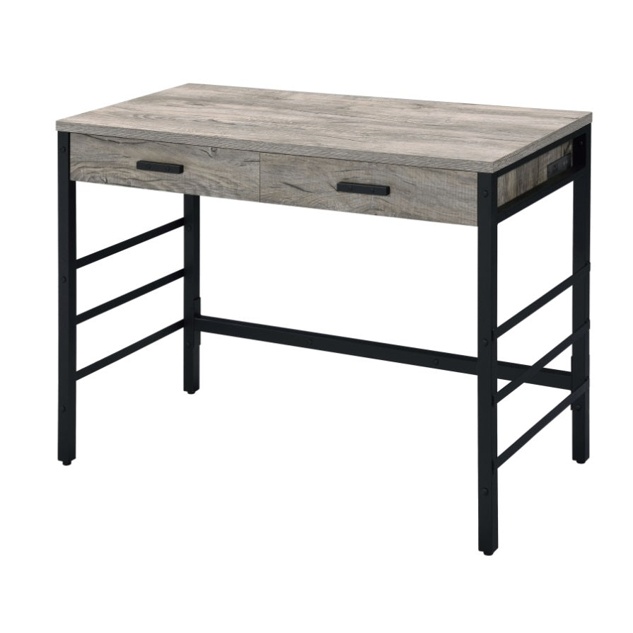 Light Weathered Oak and Black Writing Desk with 2 Drawers B062P184545