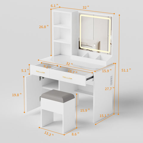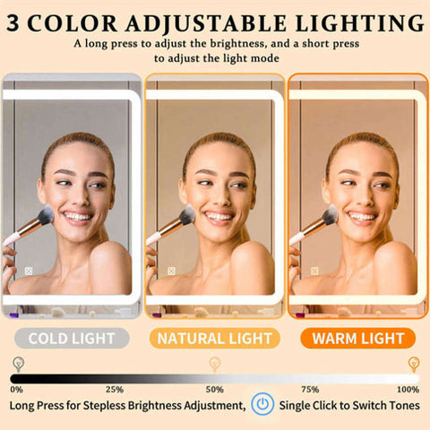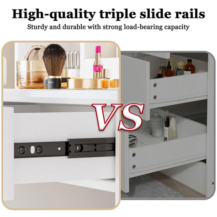 Adjustable Led Lighting: This Vanity Includes Three-Color Adjustable Led Lighting, Allowing You To Customize The Light Color And Brightness According To Your Needs For Different Makeup Requirements.