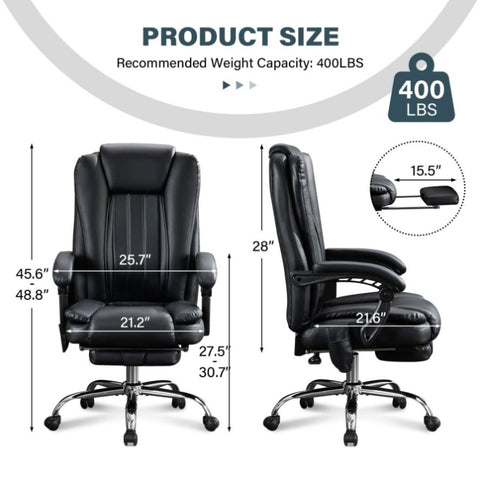 Stable and DurableThis heavy duty office chair supports up to 400 pounds and features high-quality materials, including reinforced steel and premium upholstery. Each component undergoes rigorous testing to ensure strength and durability, ensuring a reliable seating option that stands up to daily use while providing exceptional comfort.