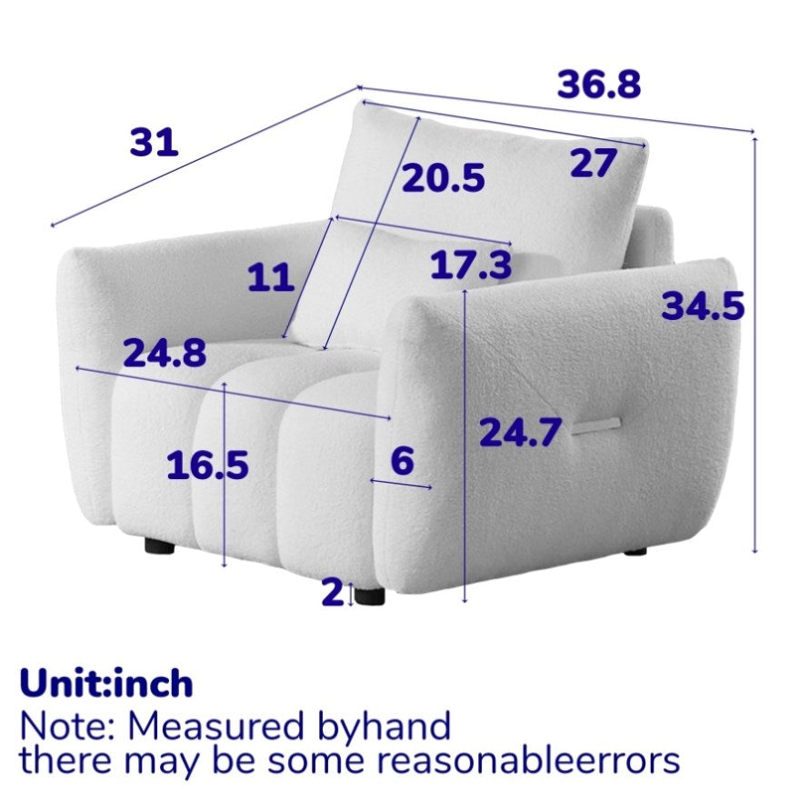 Sturdy solid wood frame, high-grade breathable teddy fleece fabric, filled with high-quality sponge, makes this sofa beautiful and comfortable, which can be perfectly matched with the living room, bedroom, home office and so on.
