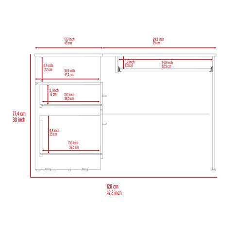 42.26 x 119.89 x 119.89 (W x D/L x H) cm