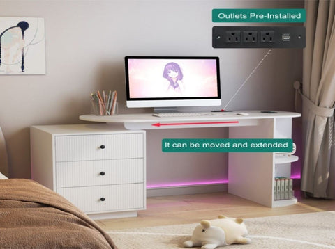 The desk is equipped with 3 AC power sockets and 2 USB charging ports, allowing you to charge computers, mobile phones, desk lamps, etc. at the same time.