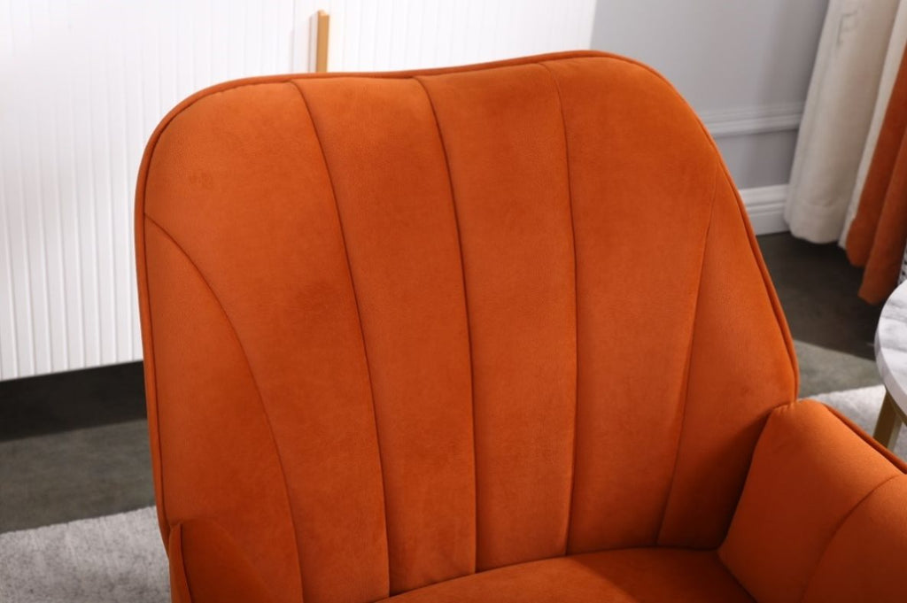 Design: Subtly curved arms, golden legs, and exquisite cutting and stitching details make this clean-lined accent chair and cute ottoman set the best pick in modern families.