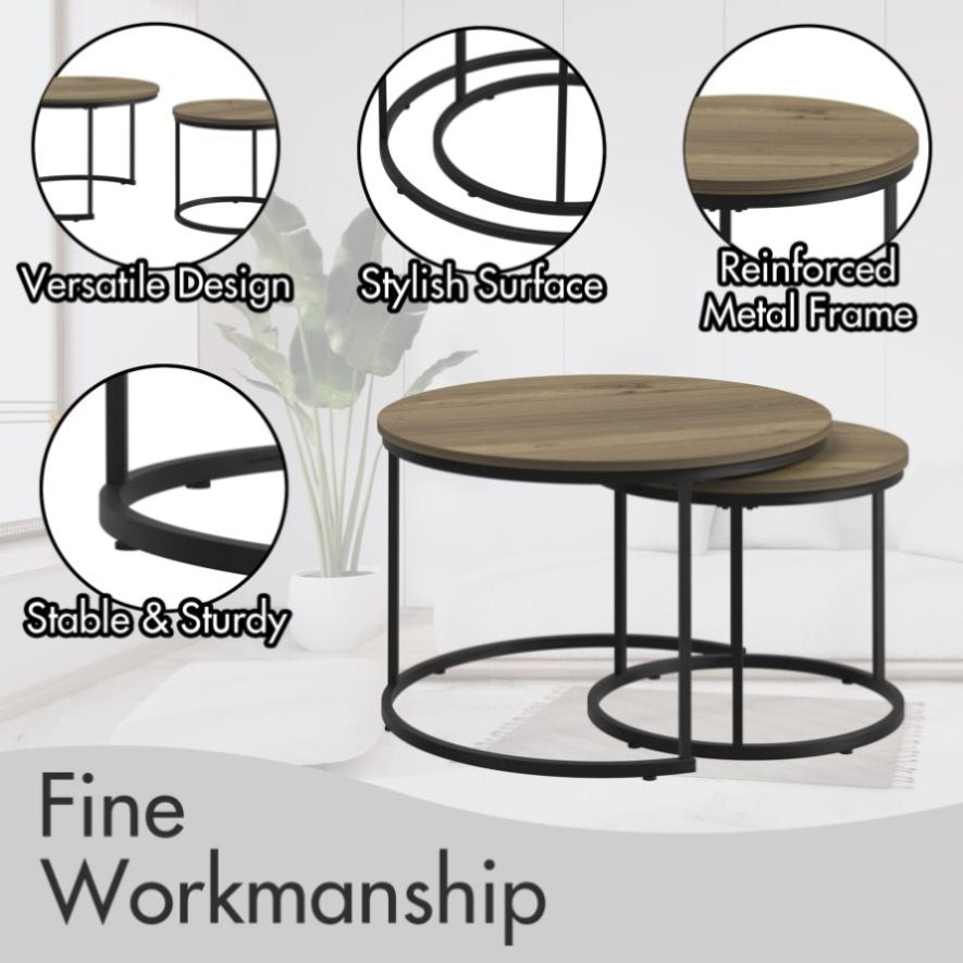 - 【Functional Nesting Coffee Table Set】The coffee table set includes 2 round tables of different sizes, you can distribute these side tables individually around the room or nest them for more space. This makes them ideal for smaller living spaces or for those who prefer a minimalist aesthetic.