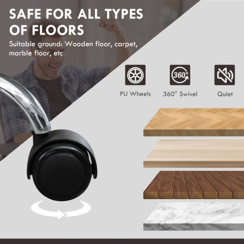 - - The PU wheels are safe for all types of floors, such as hardwood, laminate, tile, slate