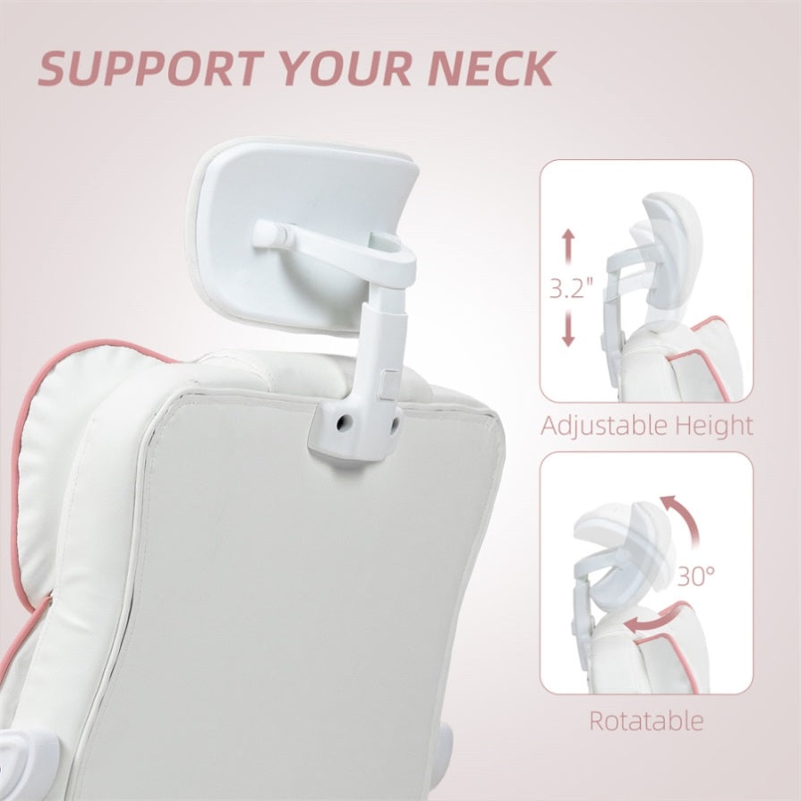 • - Rotatable and height-adjustable headrest for users up to 5'11"