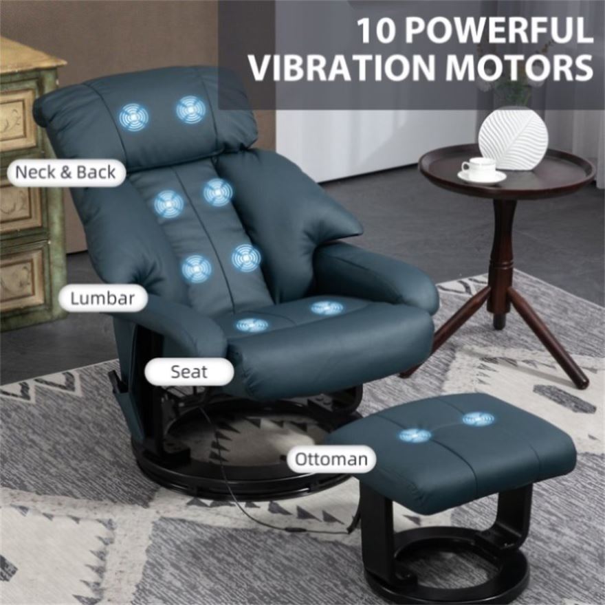 - - 10-point vibration massage on the back, lumbar, seat cushion, and footstool