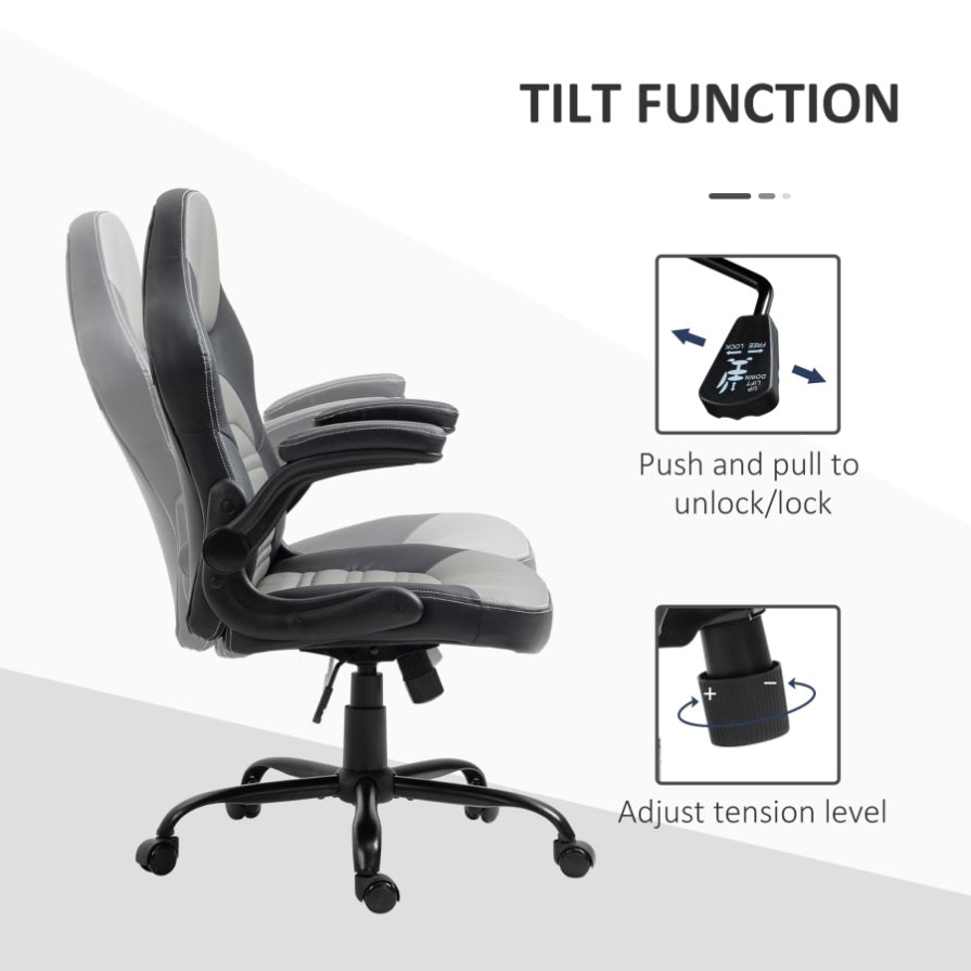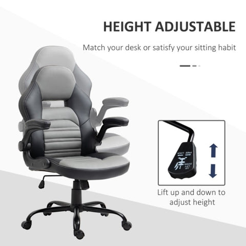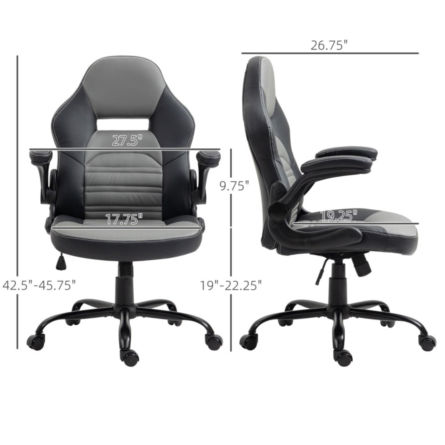 • - Flip-up armrest so the chair can be put under the desk and saves space