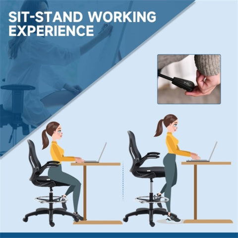 • - Put your feet on the height-adjustable foot ring to stop your legs from dangling