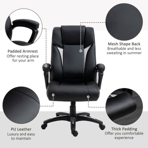 • - Curved line design with thick padding seat, armrest, back and headrest provides extra comfort