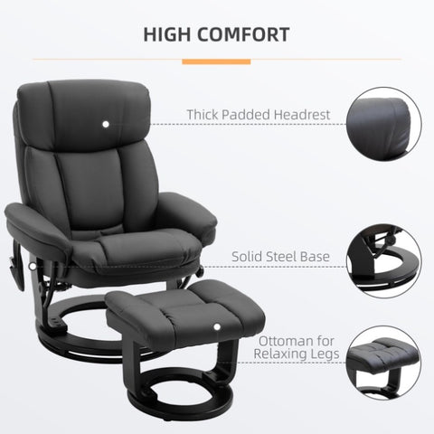 - The massage sofa can be freely adjusted to 145° for optimum comfort and relaxation (the angle is not fixed and is controlled manually) - Heavy-duty metal frame, stable enough to support 352 lbs. - 10 vibration massage points on the backrest, seat, and footrest help to relax and relieve muscle tension - Faux leather fabric is soft to touch and durable for daily use, and easy to maintain - Simple assembly required