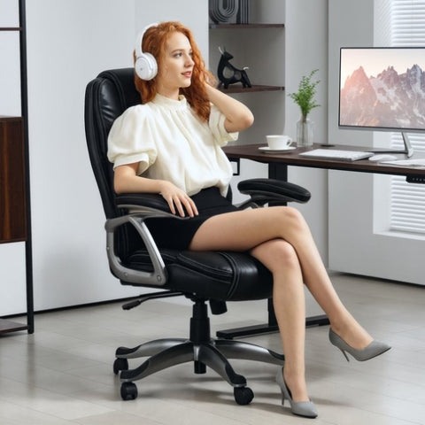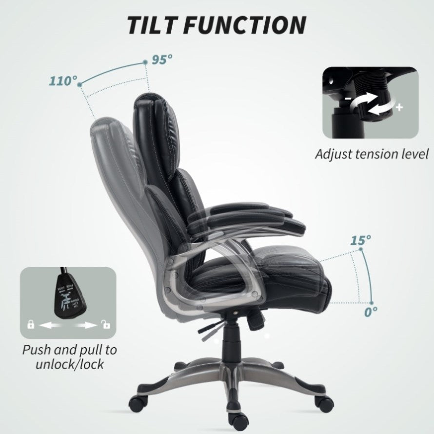 • - Thick foam padding, high back and padded armrests for comfort