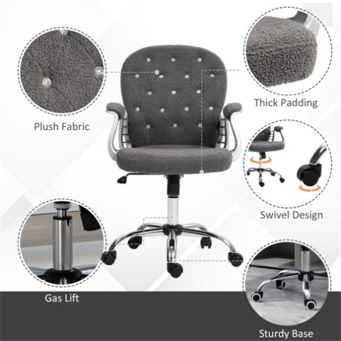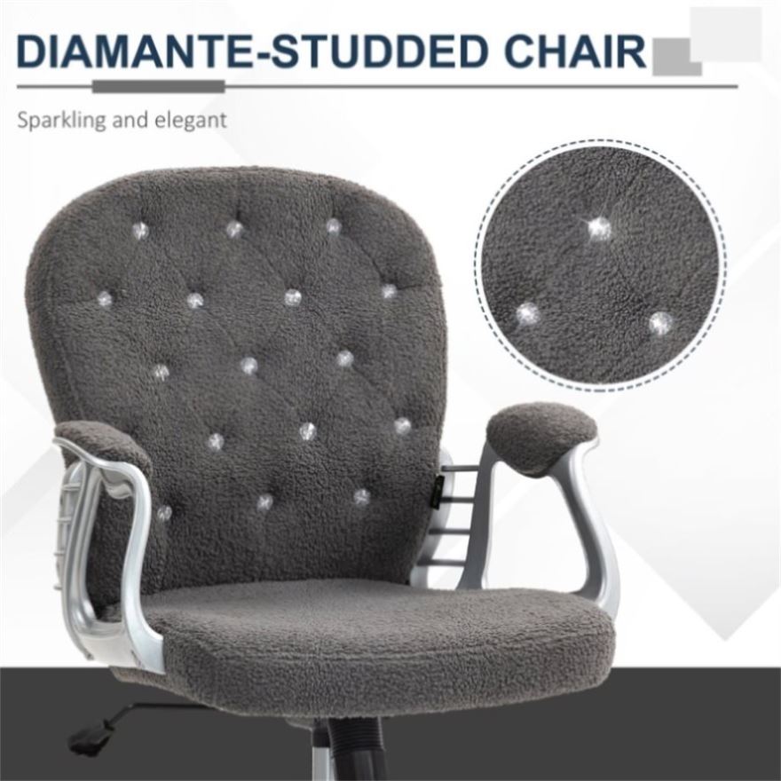 - - Material: Teddy Fleece (100% Polyester), Foam, Electroplated feet, PP painted armrest, Nylon wheels, Plastic decorative crystal