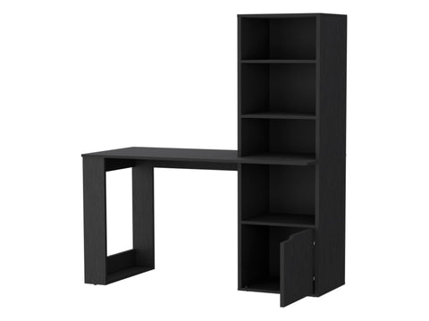Peterson Computer Desk with 4-Tier Bookcase and 1-Door Cabinet Black B062111729