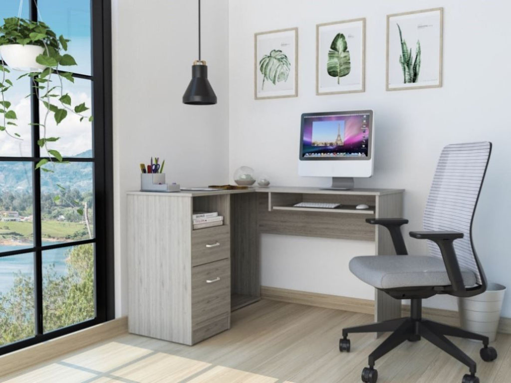 "This L-shaped office desk features ample storage and storage of accessories, a hefty load capacity, and a thick panel that makes the desk sturdy. It has easy access for your legs to store all your files, documents, laptop, consoles. Plus, underneath the desk, you will find plenty of space to keep your legs relaxed and place your CPU or other supplies. Its two drawers allow storage of lots of files, books, and more. It has an open shelf to keep the CPU protected, and most importantly, thinking about facilitating the use of the desk, it has a sliding shelf for keyboards, allowing you to hide your keyboard without taking up space on the main surface.