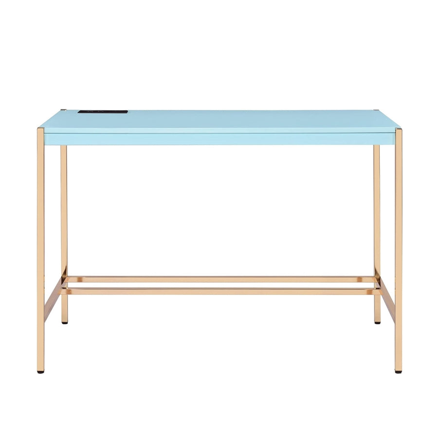 Rectangular Writing Desk with USB Port, Baby Blue and Gold B016P326059