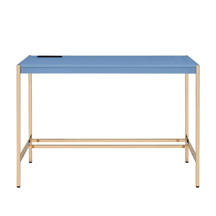 Rectangular Writing Desk with USB Port, Navy Blue and Gold B016P326482