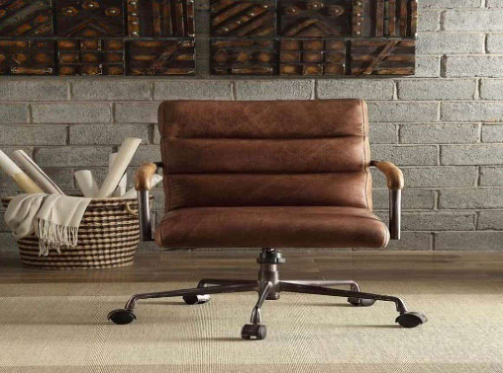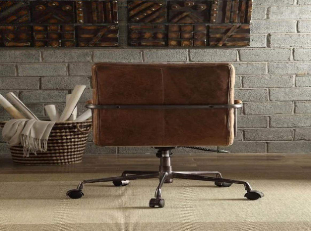 Retro Brown Swivel Office Chair with 5-Star Base B062P215468