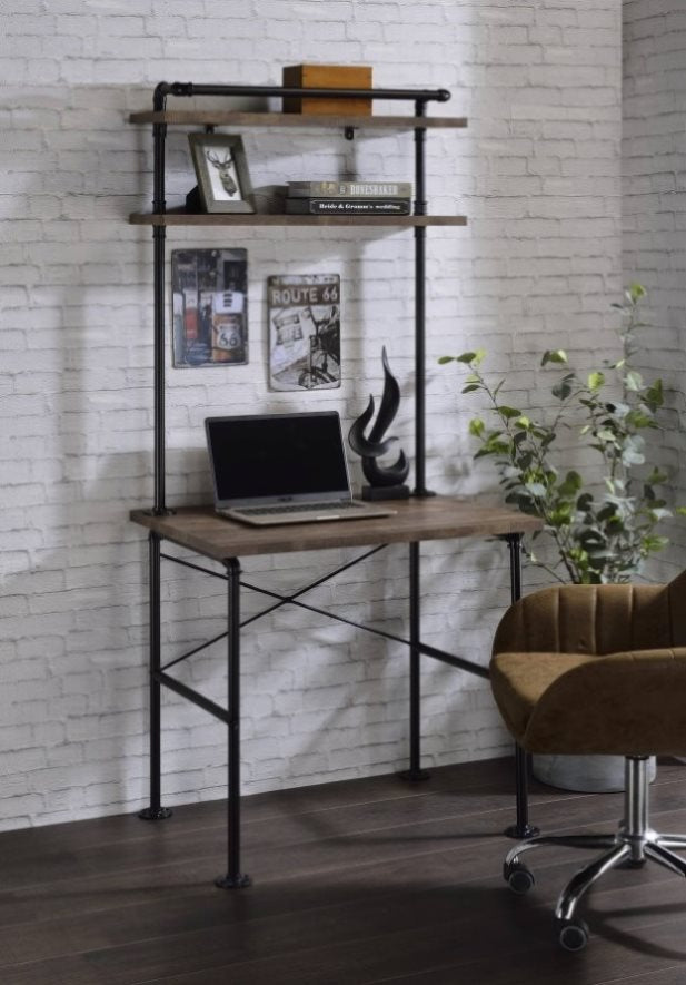 Rustic Oak and Black 2-Shelf Writing Desk B062P209208