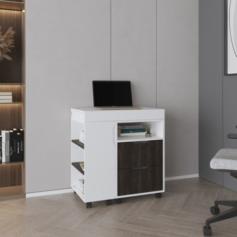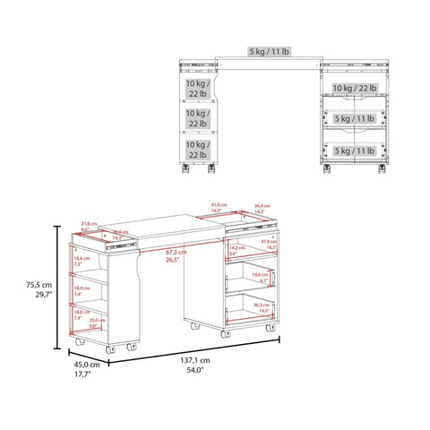 San Diego 54" Wide Two Drawer Expandable Desk with Seven Shelves and Casters White - Dark Walnut B070P286449