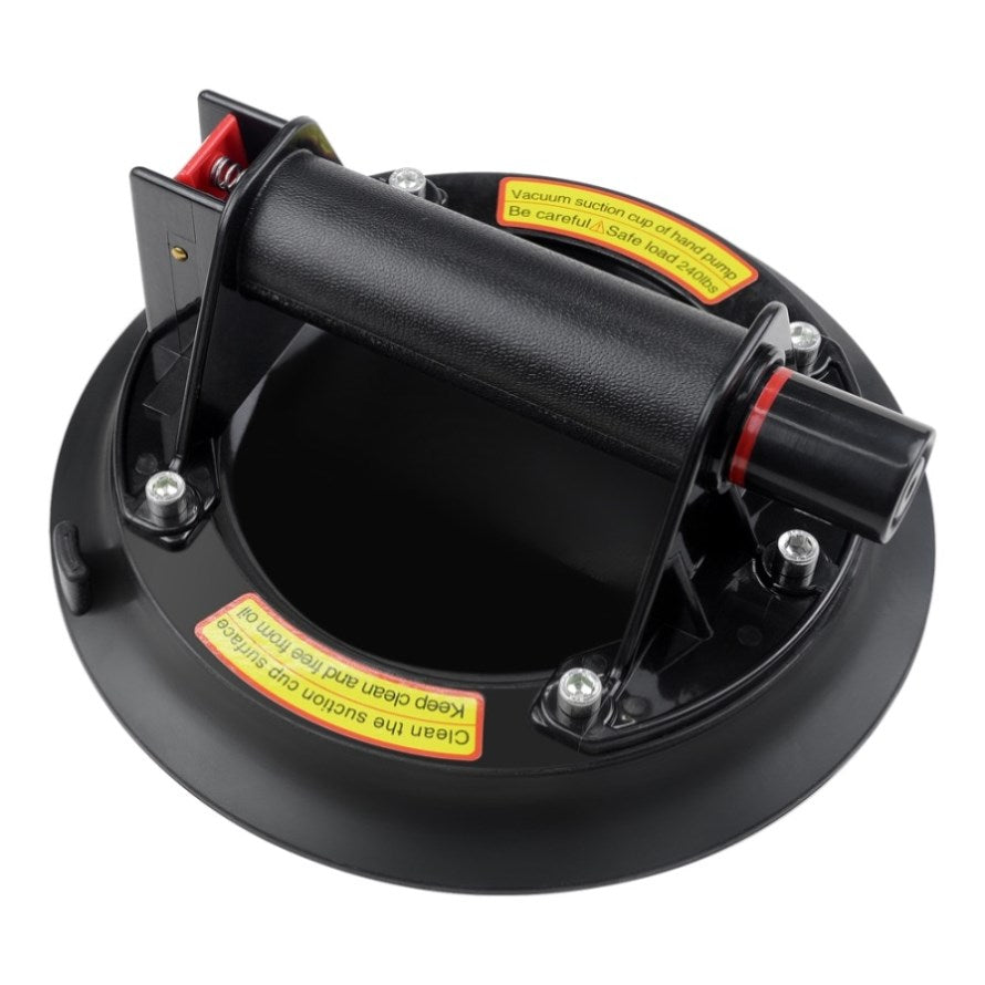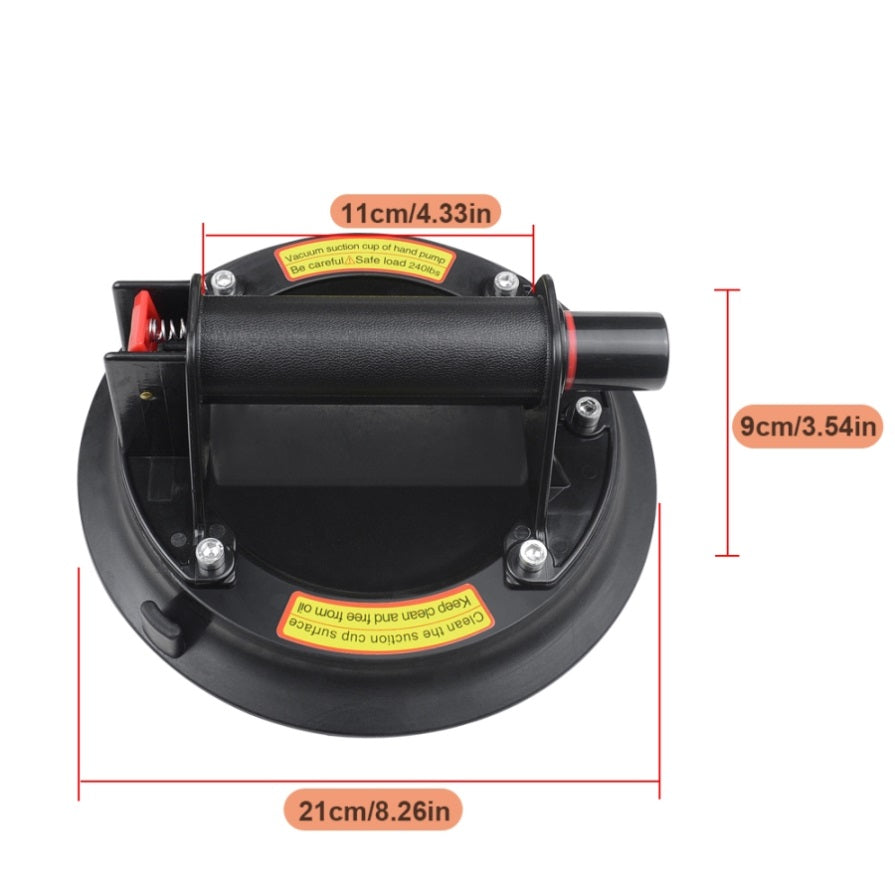 4. Wide Application: This handheld glass suction cup is 8 inches in diameter and is capable of picking up objects up to 220 pounds. Widely used in various materials, such as large tiles, rock slabs, flat glass, plastics, steel plates. Perfect for lift desks, cabinets, flat screen TVs and other appliances.