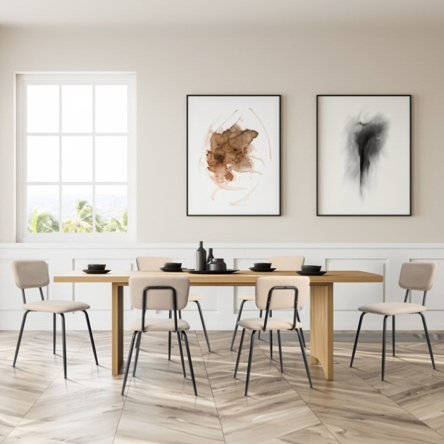 Elevate your home or office with these modern padded dining chairs, combining sleek style and exceptional comfort. Featuring a cushioned seat and soft backrest, these chairs provide ultimate support for long hours of seating. Their minimalist design with clean lines and a sleek black finish seamlessly complements modern interiors. Crafted with a sturdy iron frame, these chairs ensure durability and stability, supporting up to 330 lbs. With adjustable foot pads, they stay level on any floor surface, offering a wobble-free seating experience. Perfect for dining rooms, offices, bars, or living spaces, these versatile chairs are easy to assemble and fit effortlessly into your space.