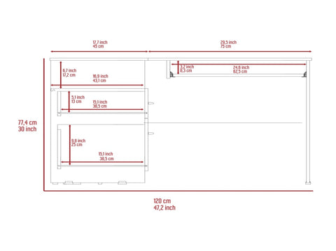 42.26 x 119.89 x 77.22 (W x D/L x H) cm