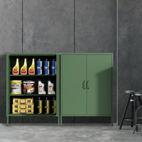 The metal storage locker, 40 inches high, comes with 2 doors and is suitable for homes, offices and T3421P357050