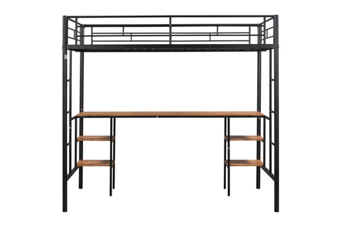 Twin-size Loft Bed with Table & Shelves/ Heavy-duty Sturdy Metal/ Built-in Table & Shelves/ Noise W42752472