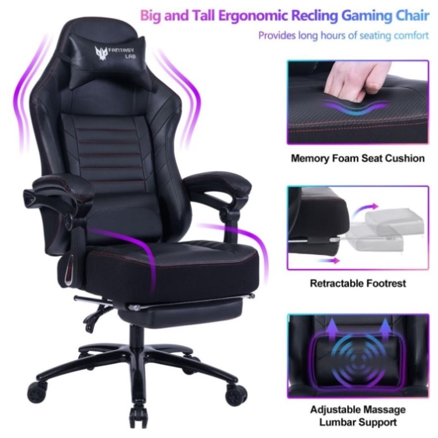 This game chair cushion uses memory cotton to enhance the sitting experience; When you are tired, you can also lie down and rest, while opening the pedals to relax your legs. The head comes with a headrest, and the back can be massaged, bringing a different experience.