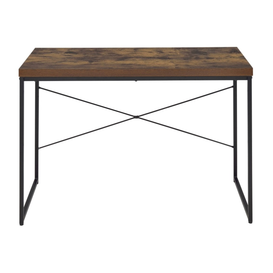 Weathered Oak and Black Writing Desk with Metal Sled Base B062P184521